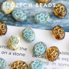 进口捷克琉璃珠三叶草图案玻璃椭圆形手工DIY饰品配件复古装饰珠