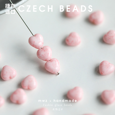 捷克进口可爱复古粉色爱心琉璃珠 手工DIY饰品串珠材料饰品配件