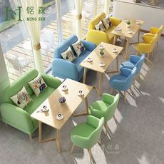 厂家直营北欧实木甜品店奶茶店桌椅餐厅清吧卡座沙发桌椅组合套装