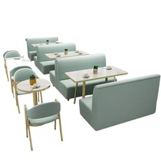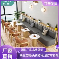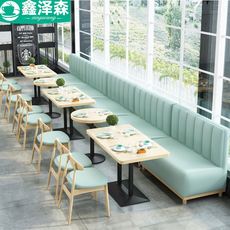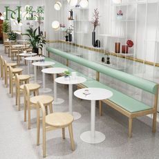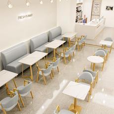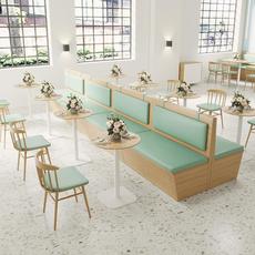 网红奶茶店甜品店靠墙卡座沙发简约清新小吃店休闲洽谈区桌椅组合