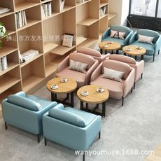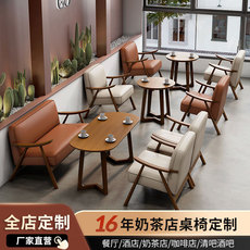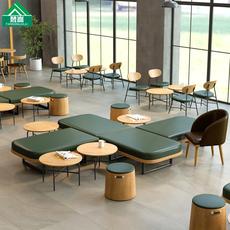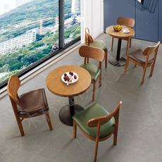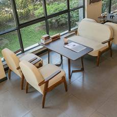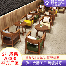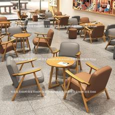 休闲咖啡厅桌椅组合甜品休息区书吧奶茶店桌椅商用实木洽谈沙发椅
