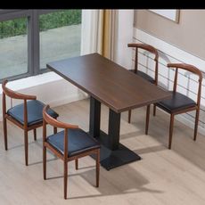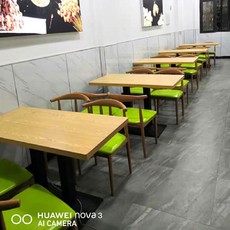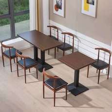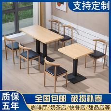 9C快餐桌椅铁艺仿实木牛角椅简约奶茶甜品汉堡店方桌食堂饭店餐桌