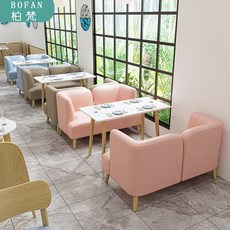 网红奶茶店桌椅组合甜品汉堡小吃快餐店简约清新餐厅家具卡座沙发