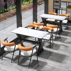 实木岩板餐桌商用饭店餐厅火锅串串香小吃店甜品汉堡快餐桌椅组合