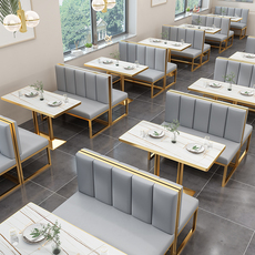 奶茶店卡座桌椅组合轻奢铁艺休息区甜品店咖啡厅酒吧餐厅靠墙沙发