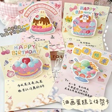 创意油画蛋糕立体贺卡可折叠浪漫表白生日礼物手写祝福卡片送朋友