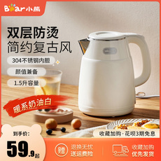美的HJ1522电热水壶家用不锈钢烧水壶自动断电双层防烫开水壶1.5L