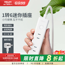 德力西迷你插座两脚插头二孔一转六电源转换器排插两插板扩展插排