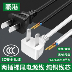 2插电源线带插头带线单插头0.5/0.75平两项两孔2芯二脚裸尾纯铜线