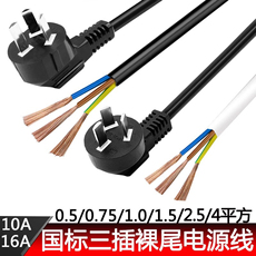 10A16a国标三插孔3芯带插头电源线大功率1/1.5/2.5/4平方单头裸尾