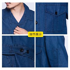 立领牛仔工作服套装男上衣纯棉电焊防烫耐磨大口袋秋冬焊工劳保服