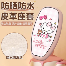 可爱kt猫电动车防水座套防晒隔热皮革四季用卡通电瓶车保护坐垫套