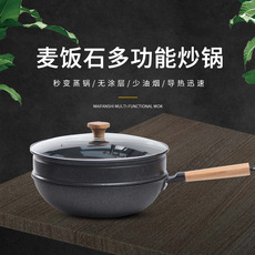 麦饭石不粘锅炒锅家用电磁炉通用平底锅炒菜锅煤气灶专用燃气适用