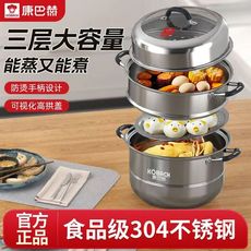 康巴赫蒸锅家用304不锈钢蒸笼蒸鱼馒头三层加厚电磁炉煤气灶通用
