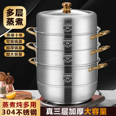 小蒸锅316不锈钢三层加厚家用汤锅带蒸笼双多2层电磁炉煤气灶专用