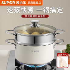 苏泊尔蒸锅家用304不锈钢蒸笼加厚双层蒸煮炖锅电磁炉家用煤气灶