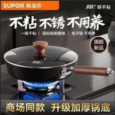苏泊尔有钛无涂层煎锅平底不粘锅铸铁家用牛排锅电磁炉煤气灶通用