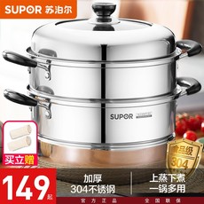 苏泊尔蒸锅家用304不锈钢蒸笼双层三层多层电磁炉煤气灶通用汤锅