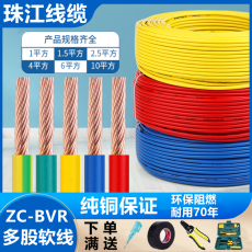 珠江电线国标平方纯铜R.家用电线.多股软线阻燃家装
