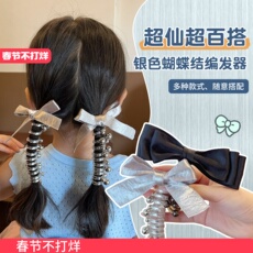 女童扎马尾扭扭发圈银色蝴蝶结头绳儿童电线圈发绳ins风编发神器