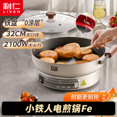 利仁电饼铛DJG-J3255家用电煎锅304不锈钢0涂层电饼档32cm加大