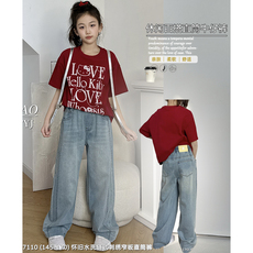 suntomorrow童装牛仔裤2025秋装新款休闲阔腿裤男女中大童长裤子