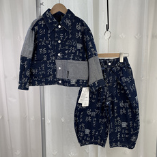 宝W品牌撤柜童装中大童男童国风印字套装儿童春秋牛仔外套+裤子