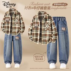 迪士尼男童秋套装2025新款帅气男孩衣服中大童衬衣秋装儿童牛仔裤