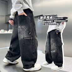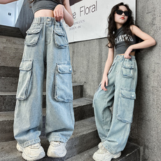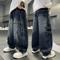 中大童儿童牛仔裤工装裤宽松洋气帅气潮流炸街舞男女童裤子休闲裤