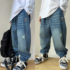 儿童牛仔裤2024秋季新款中大童高街阔腿休闲长裤男童破洞哈伦裤潮