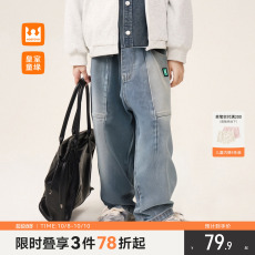 花样衣家男女童中大童秋季新款双色拼接牛仔裤长裤直筒裤休闲裤