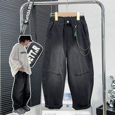 魔西童装2025秋季男童黑超中大童牛仔裤宽松直筒型休闲长裤男孩