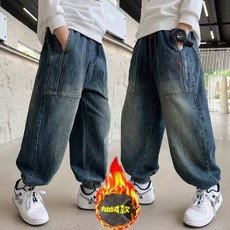 加绒加厚中大童时尚裤子宽松牛仔裤2024新款冬季男童裤子颗粒绒