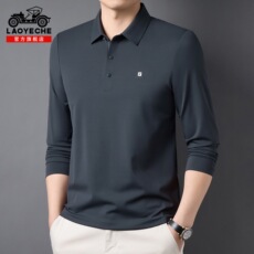啄木鸟长袖t恤男士纯色polo衫商务休闲大码打底衫翻领抗皱上衣服