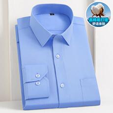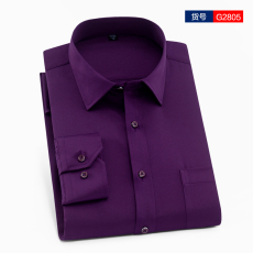 2020春季新款男士长袖衬衫商务休闲职业装纯紫色衬衣打底衫略修身