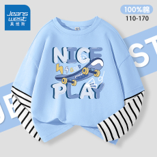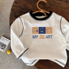 依依妈男童字母明线长袖t恤儿童秋装上衣宝宝宽松圆领休闲打底衫