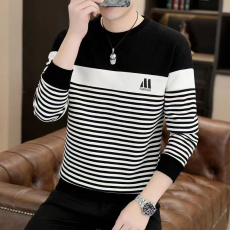 秋冬新款男士套头印花四杠圆领打底衫潮流时尚长袖休闲不加绒卫衣