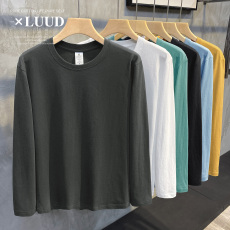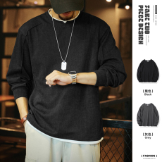 纯色两件装秋季长袖T恤男休闲宽松圆领大码秋衣中青年打底衫潮ins