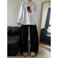 PLTH*美式复古基础纯棉字母印花圆领长袖T恤男宽松休闲百搭打底衫