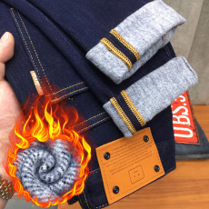 秋冬季加绒加厚男士牛仔裤潮流修身小直筒弹力保暖百搭休闲裤子男