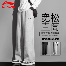 李宁运动裤男春秋新款宽松休闲大码垂感长裤棉质灰色跑步直筒裤子