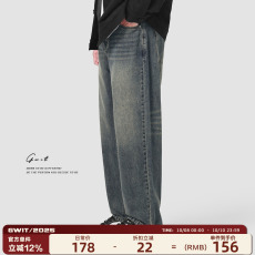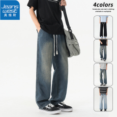 迈特优牛仔裤男春秋新款美式高街水洗裤子宽松直筒休闲长裤子