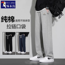 啄木鸟正品男休闲运动长裤春秋款加绒学生篮球卫裤宽松直筒垂感裤