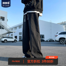 直筒裤子男春秋新款黑色青少年潮牌胖子加肥加大大码宽松休闲裤子