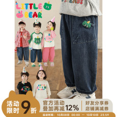 幼悠男童裤子2025新款春季玩偶休闲裤宽松直筒儿童时尚百搭牛仔裤