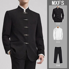 男士西服套装高级感韩版修身新中式中山装结婚伴郎婚礼服立领西装