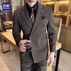 英伦绅士双排扣西装男套装秋冬新款2025年咖色修身商务正装高级感