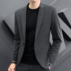 男士休闲修身小西装套装大学生西装男外套灰色商务春秋季西服上衣