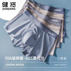 健将80S莫代尔男士内裤冰丝感平角裤宽松透气高档男生四角短裤衩