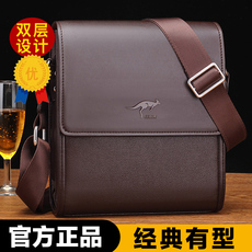 正品袋鼠真皮男包手提包男士包包单肩斜挎包商务皮包公文包背包男